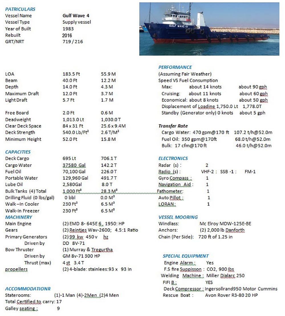 مشخصات فنی شناورها